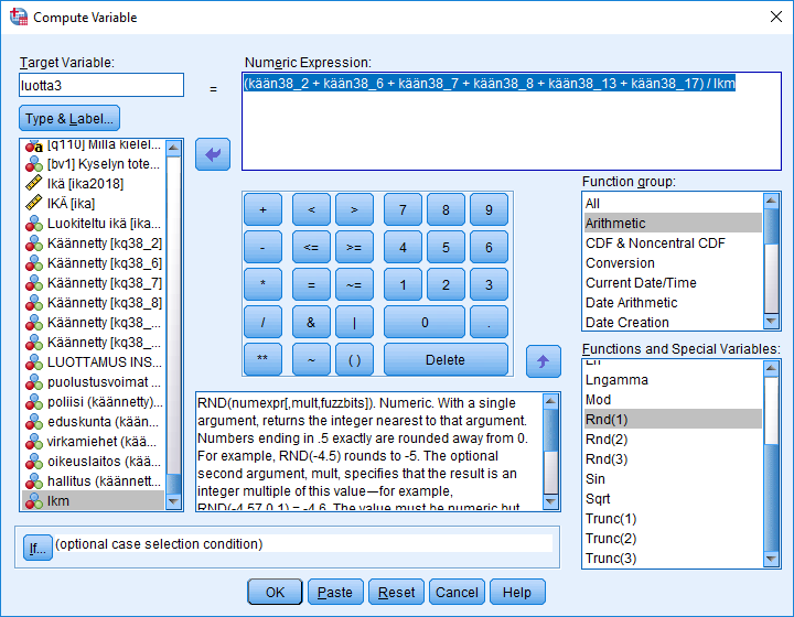 COMPUTE luotta3=RND((kään38_2 + kään38_6 + kään38_7 + kään38_8 + kään38_13 + kään38_17) / lkm).